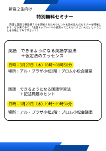 新高校2年生 無料セミナー&春期講習